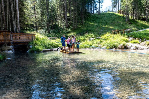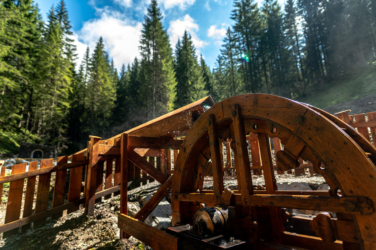 - ein Wasserrad und geschnitzte Figuren laden zum Verweilen und Erkunden ein.
