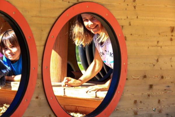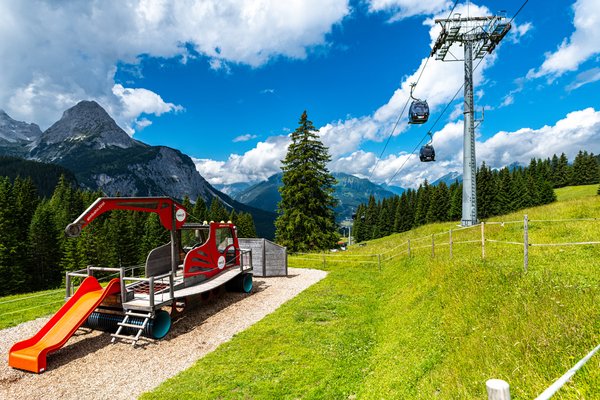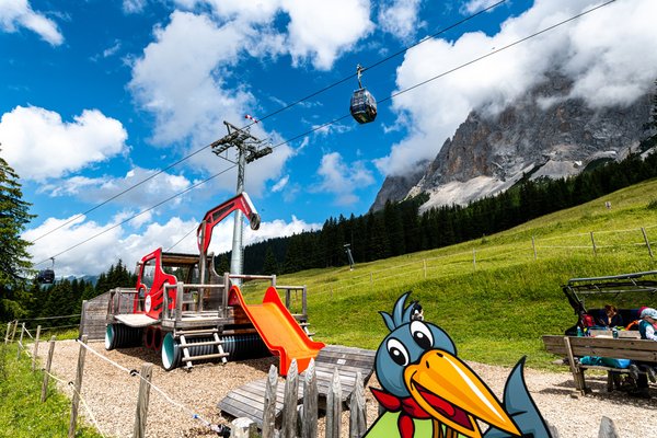 - eine hölzerne Pistenraupe zum Klettern